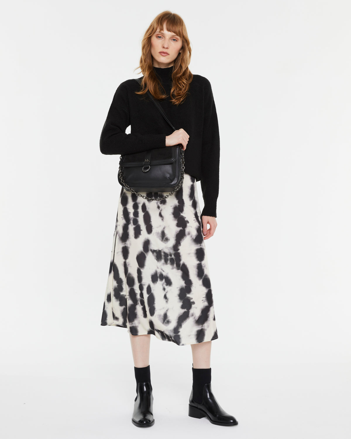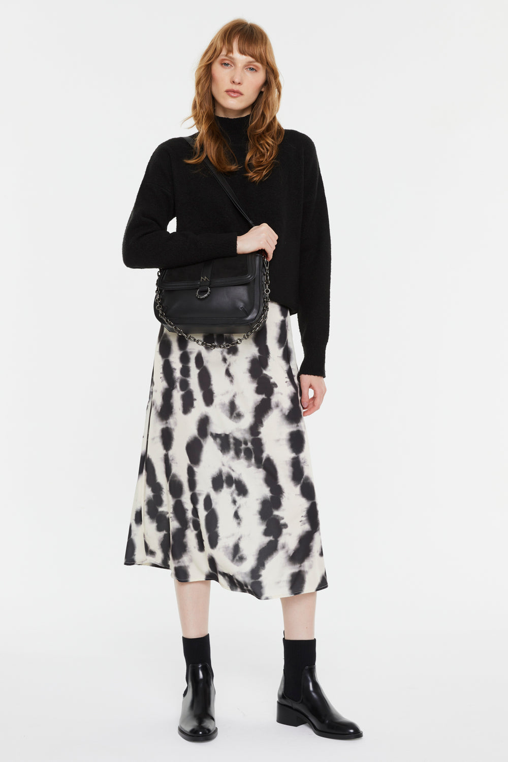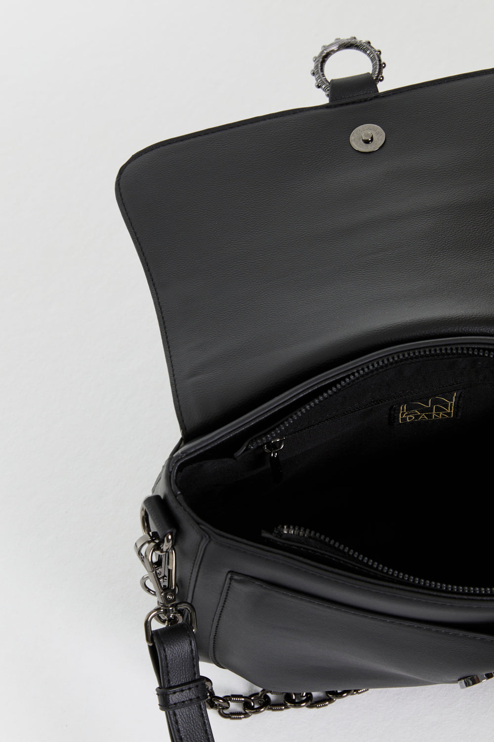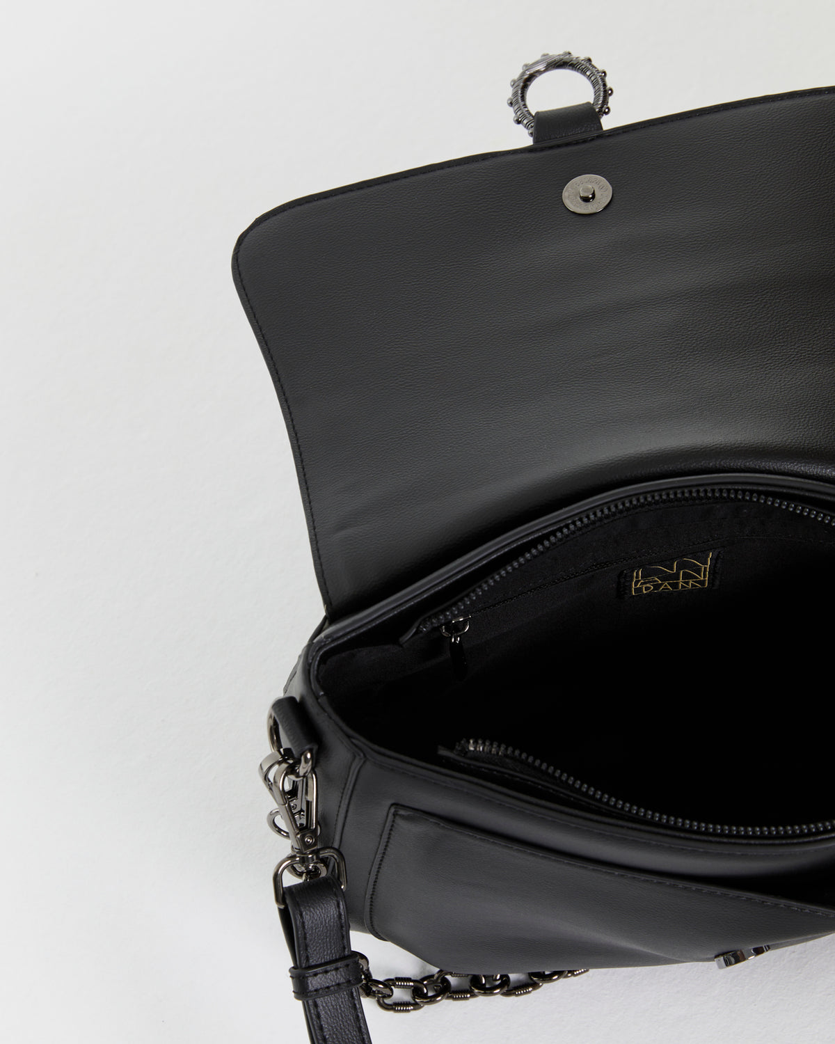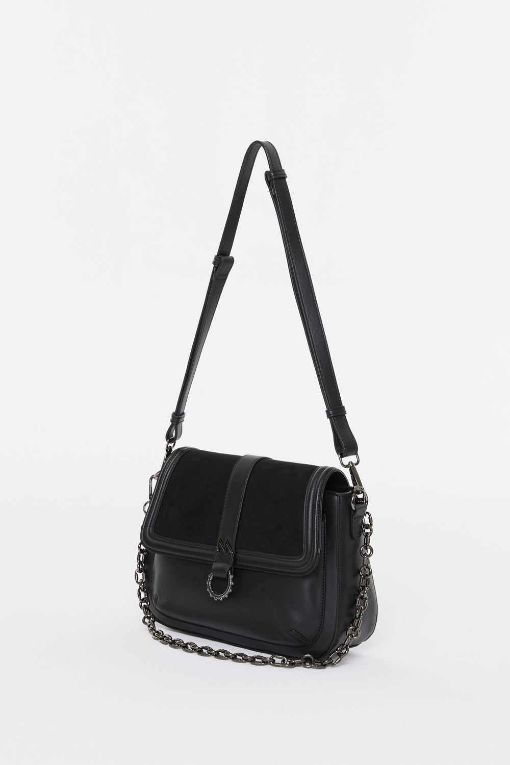 Kleine Umhängetasche in Leder- und Wildlederoptik. Reißverschluss und Magnetknopfverschluss mit edlem Ringdetail. Ein abnehmbarer, verstellbarer Riemen und eine abnehmbare Kette verleihen ihr einen markanten und praktischen Stil. Innentaschen mit Reißverschluss.