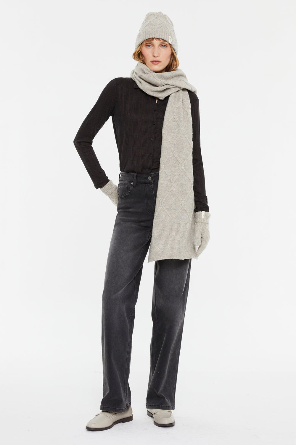 Strukturierter Basic-Schal mit gewebtem Etikett und Markenlogo. Passende Handschuhe und Mütze sind ebenfalls erhältlich.