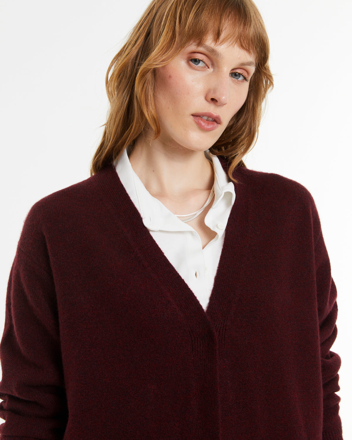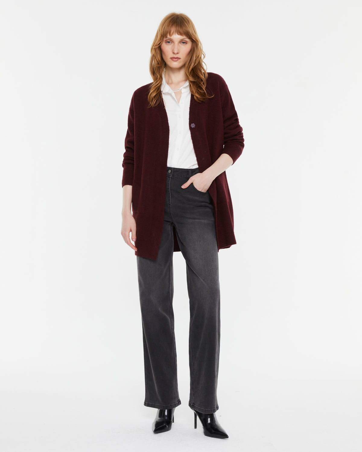 Basic-Cardigan mit langen Ärmeln. Frontverschluss mit verdecktem Druckknopf. Seitentaschen. Rippbündchen an Ärmeln und Saum. Dieser feminine Cardigan verleiht Ihnen einen jugendlichen, modernen Look. Normale Passform.