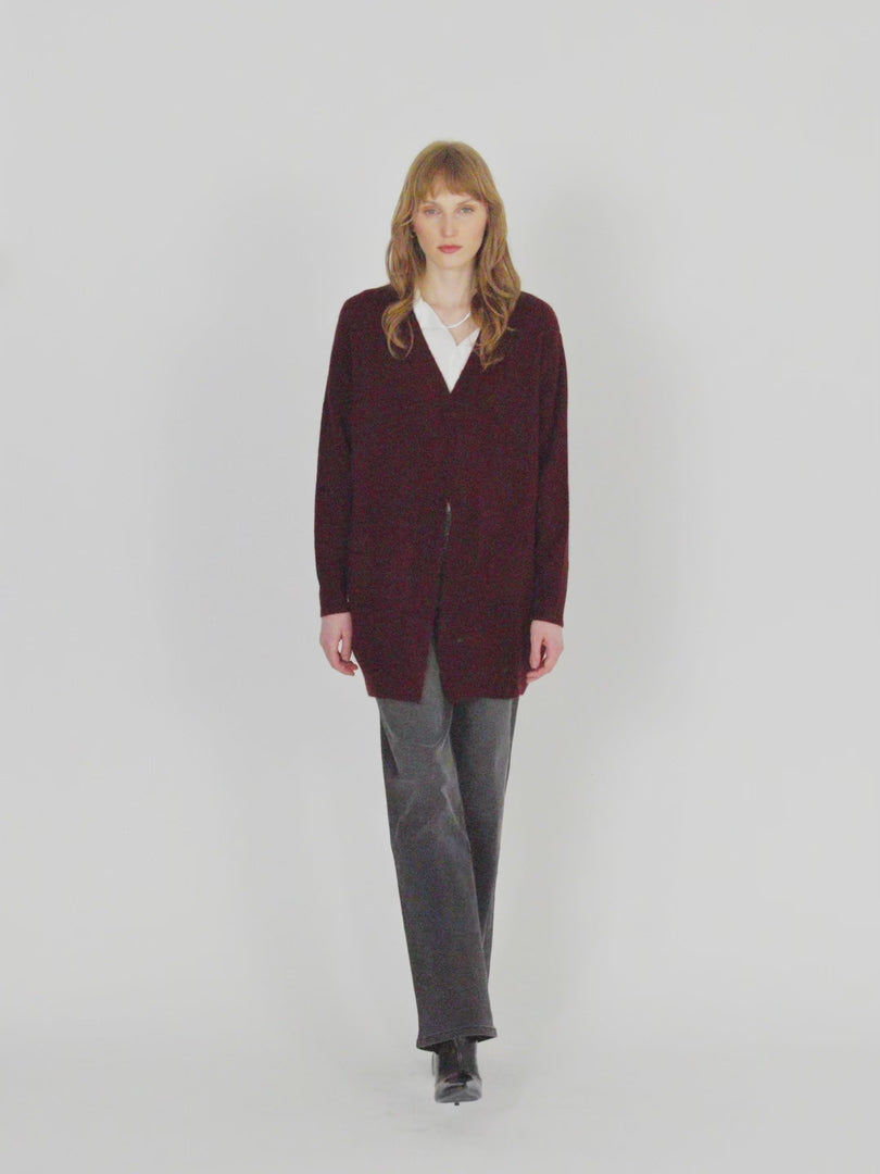 Lange Damen Strickjacke mit Knöpfen und Taschen