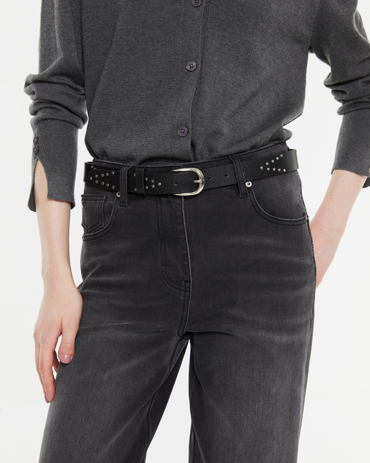 Gürtel aus Ökoleder mit runder Schnalle und Nieten