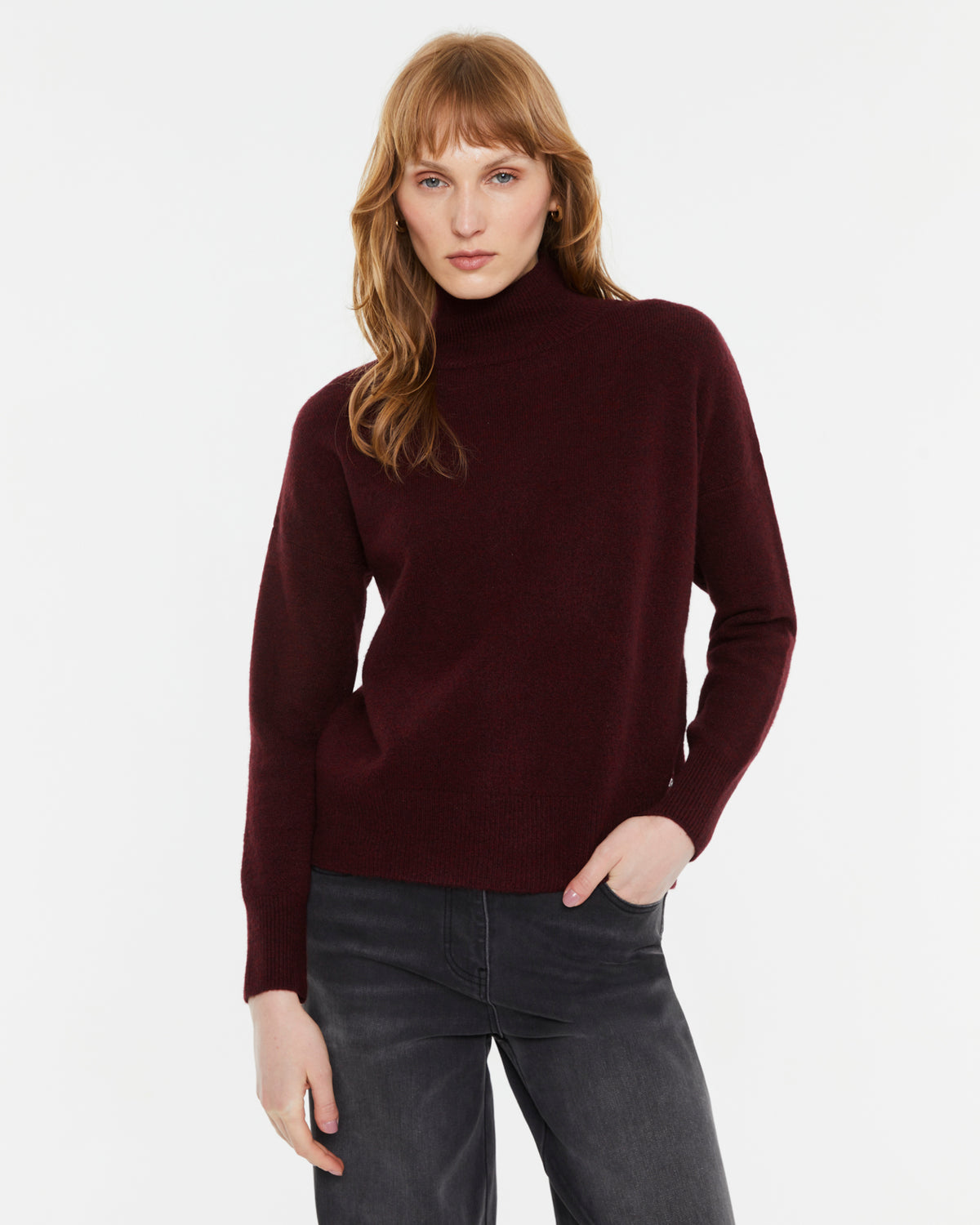 Langärmliger Rollkragenpullover. Rippbündchen an Halsausschnitt, Bündchen und Saum. Dieser feminine Basic-Pullover verleiht Ihrem Look eine jugendliche, moderne Note. Normale Passform.