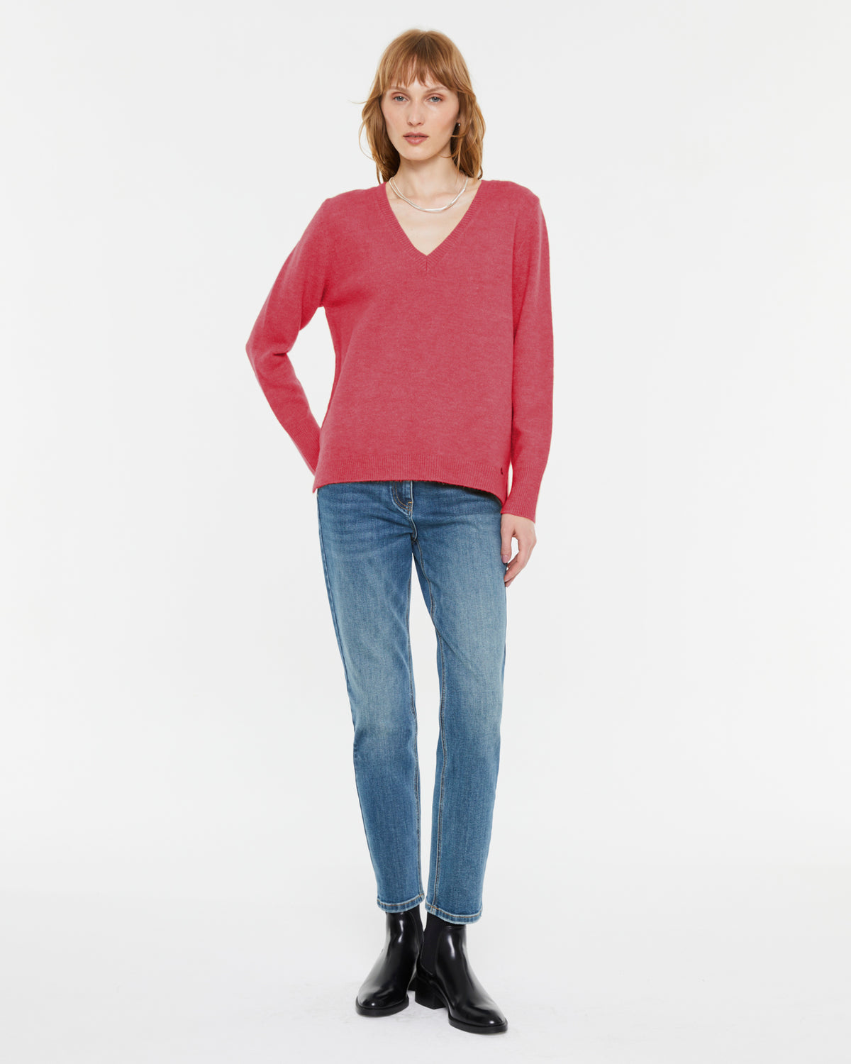 Basic Damen V-Ausschnitt Pullover