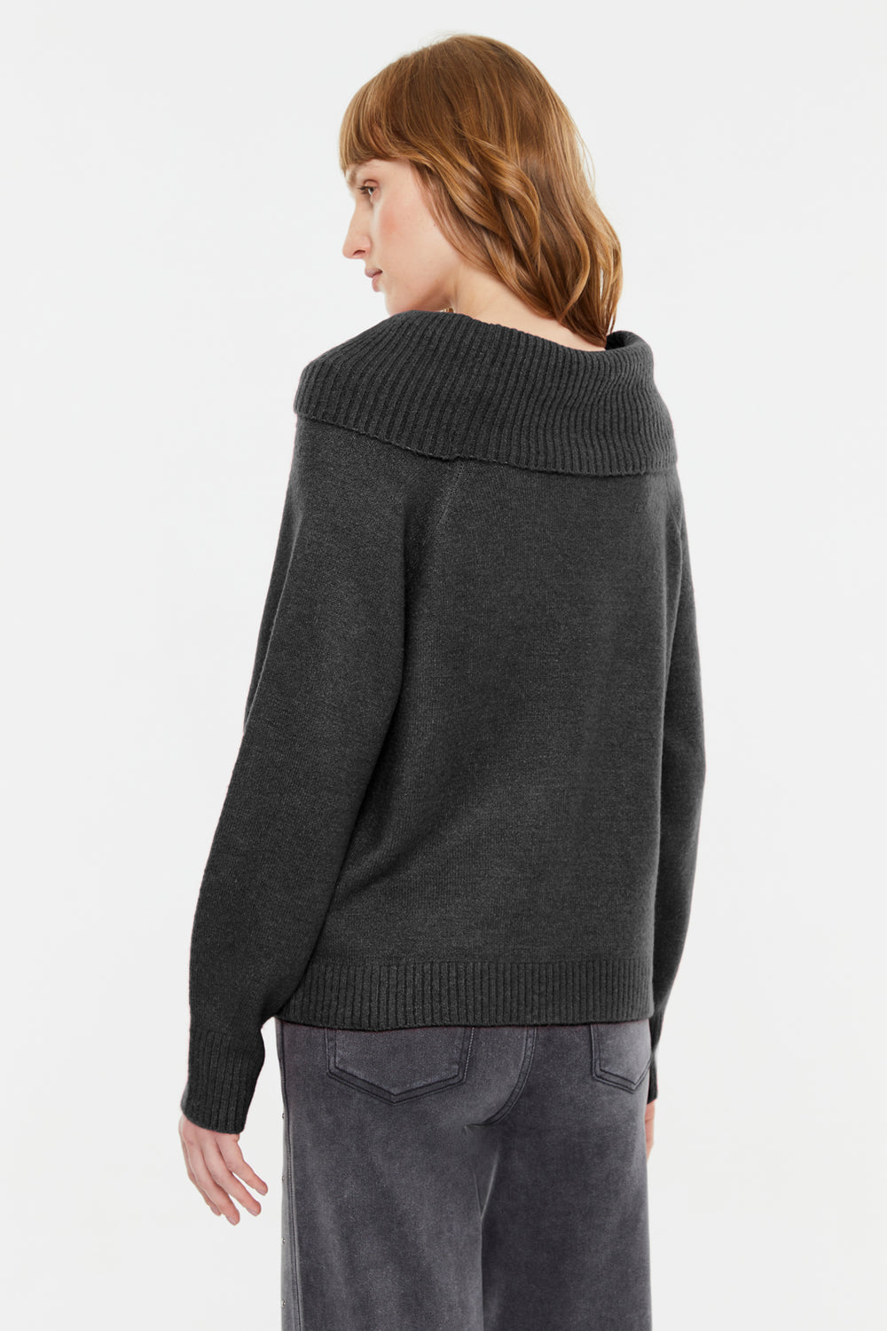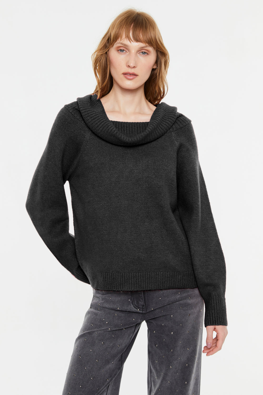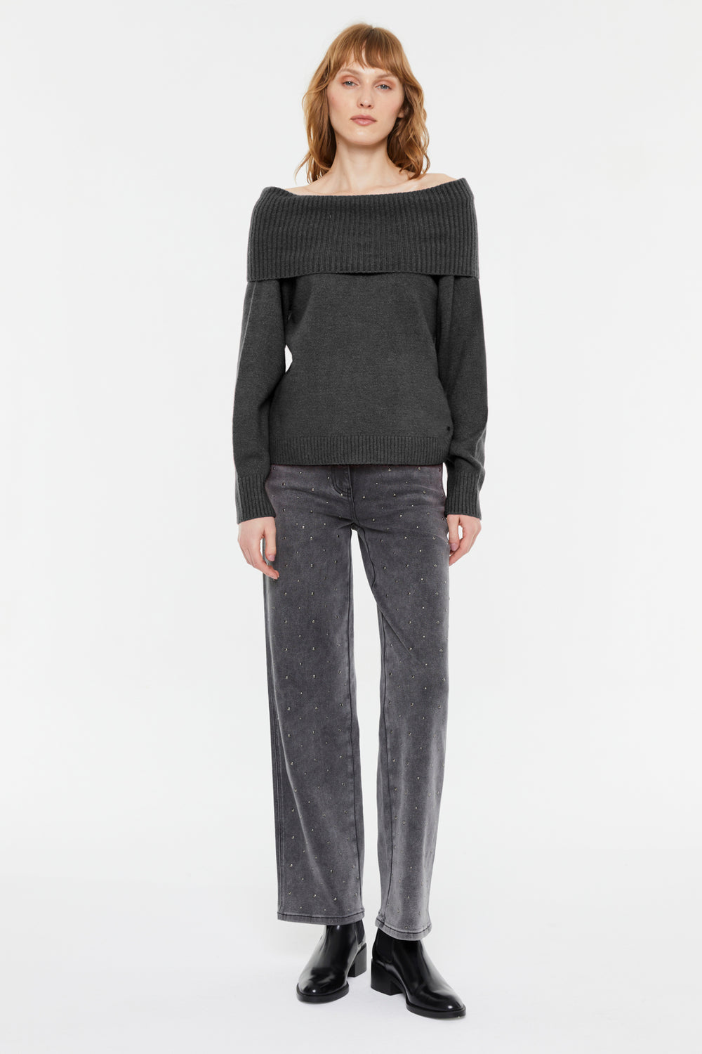 Basic-Pullover mit langen Ärmeln und Bardot-Ausschnitt. Rippbündchen an Halsausschnitt, Bündchen und Saum. Dieser feminine Basic-Pullover verleiht Ihrem Look einen jugendlichen, modernen Touch. Normale Passform.