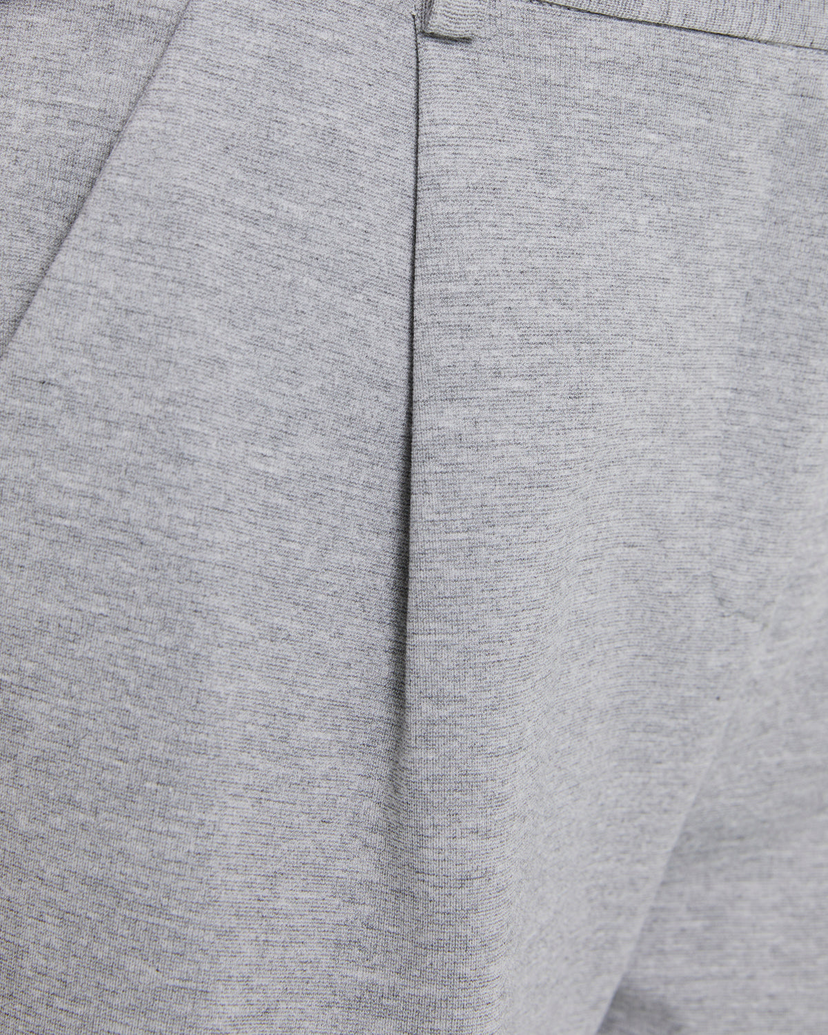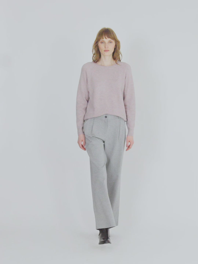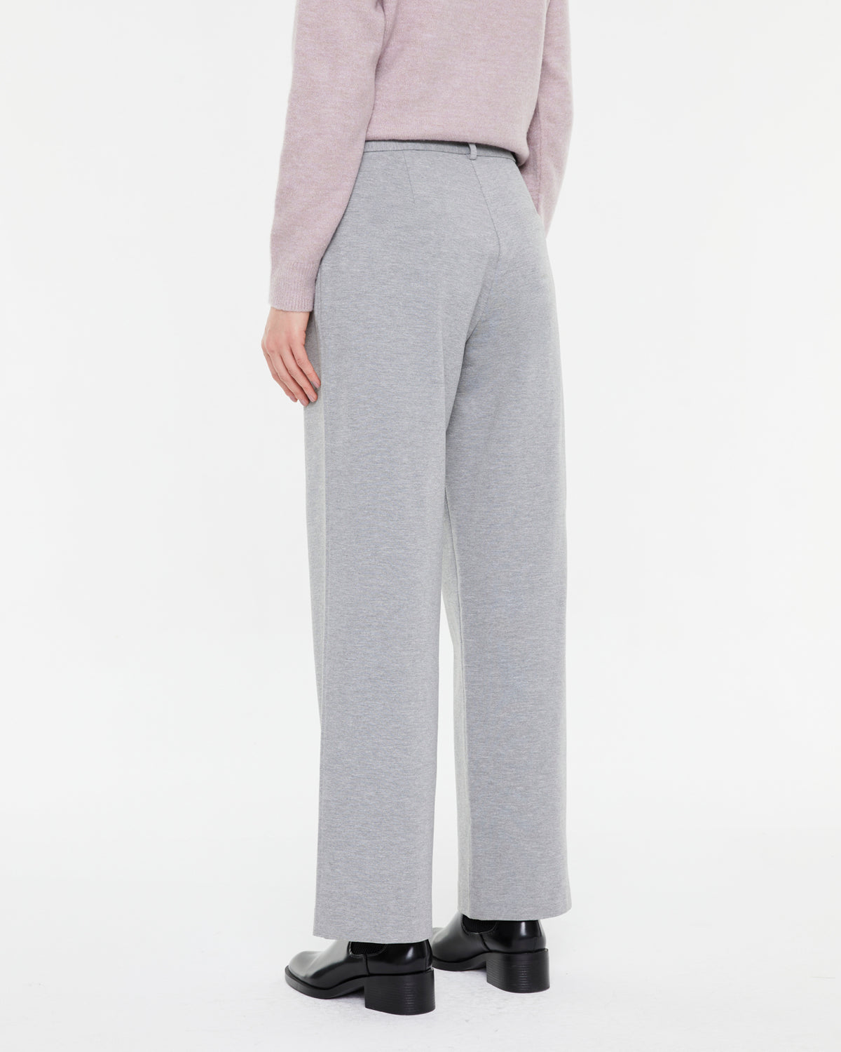 Weite, glatte Strickhose mit hoch taillierten Bundfalten. Seitentaschen. Knopf- und Reißverschluss. Sehr bequem und schmeichelhaft.