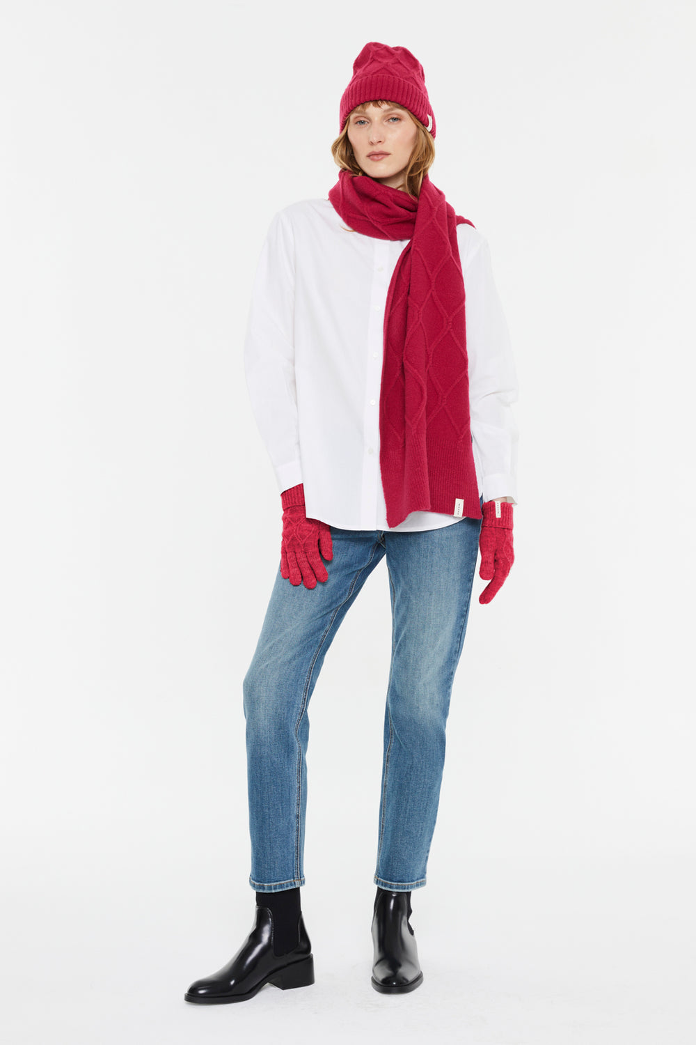 Basic structured scarf with a woven label featuring the brand's logo. Matching gloves and hat are also available.