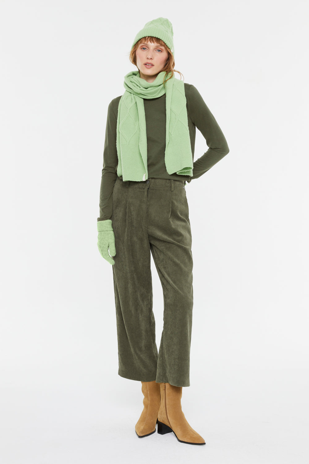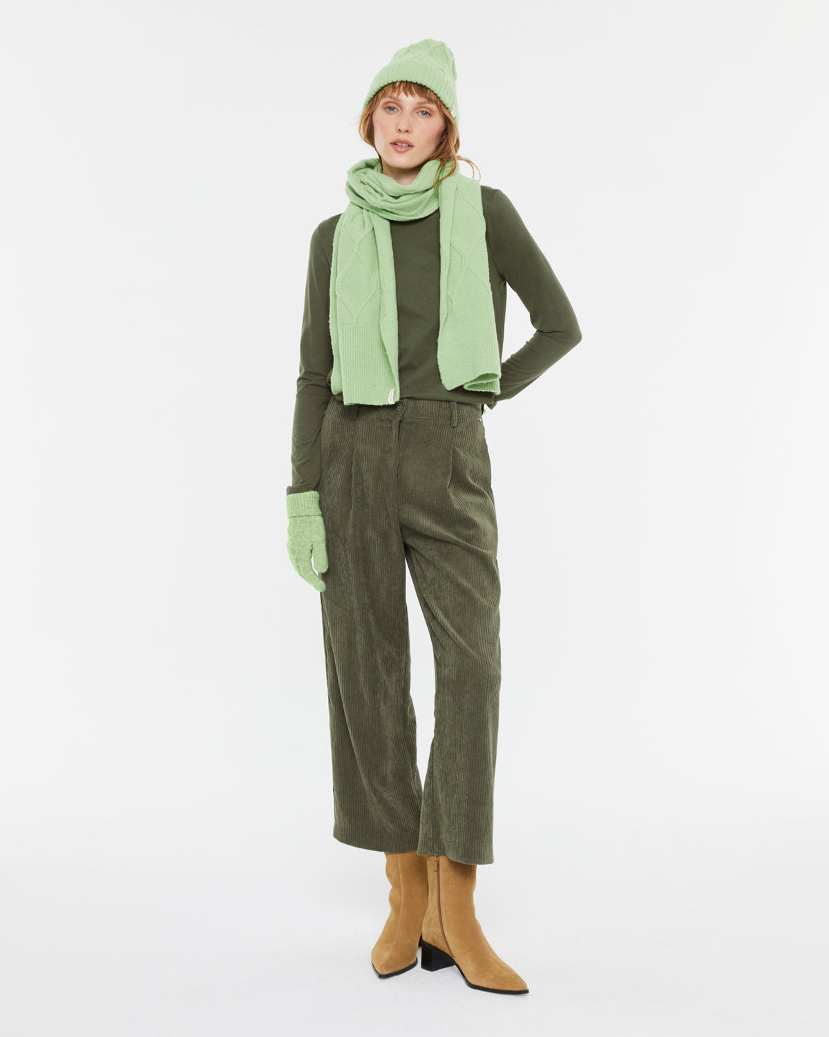 Basic structured gloves. Woven label with the brand logo. Matching hat and scarf are available.