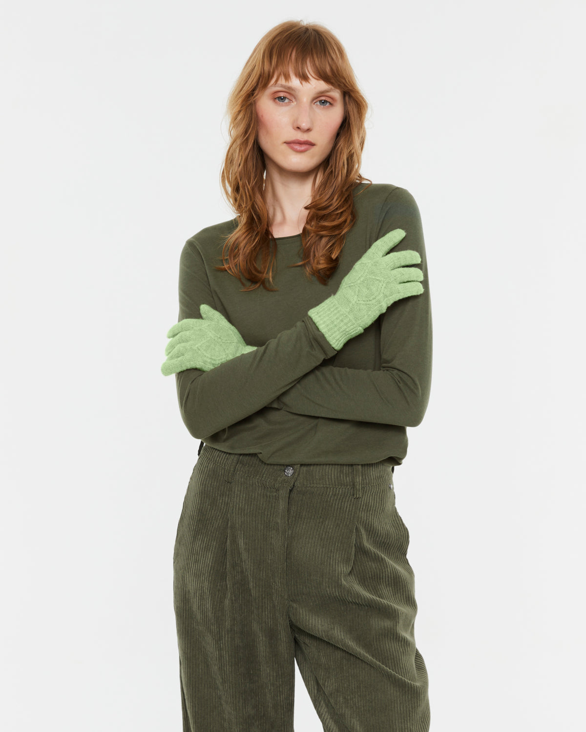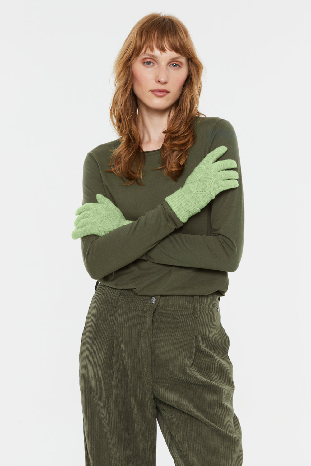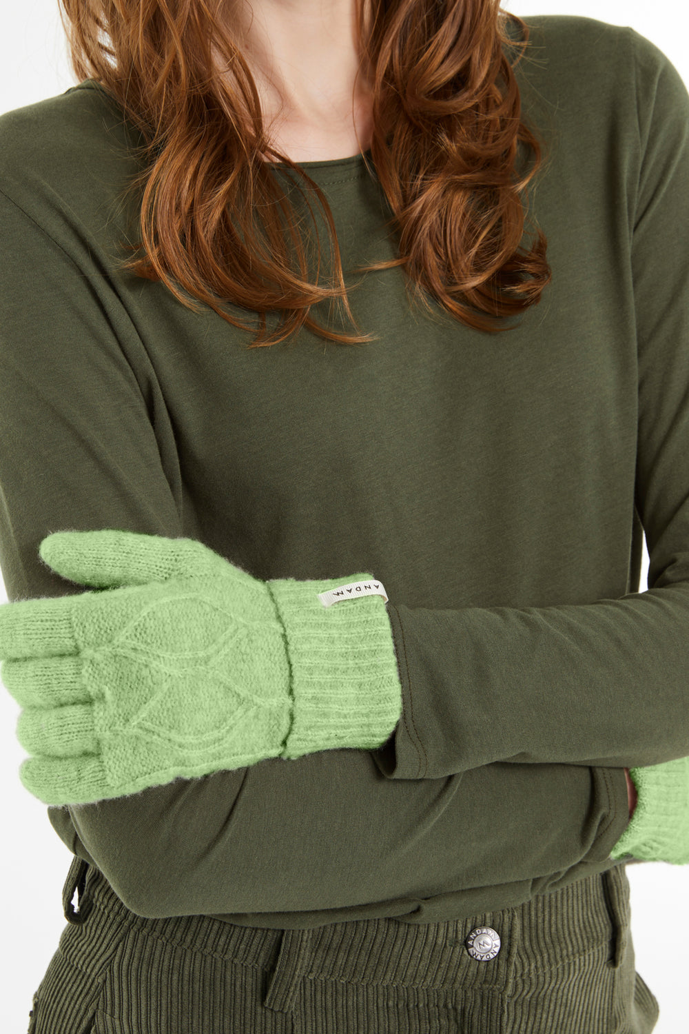 Women's knitted gloves with braided structure