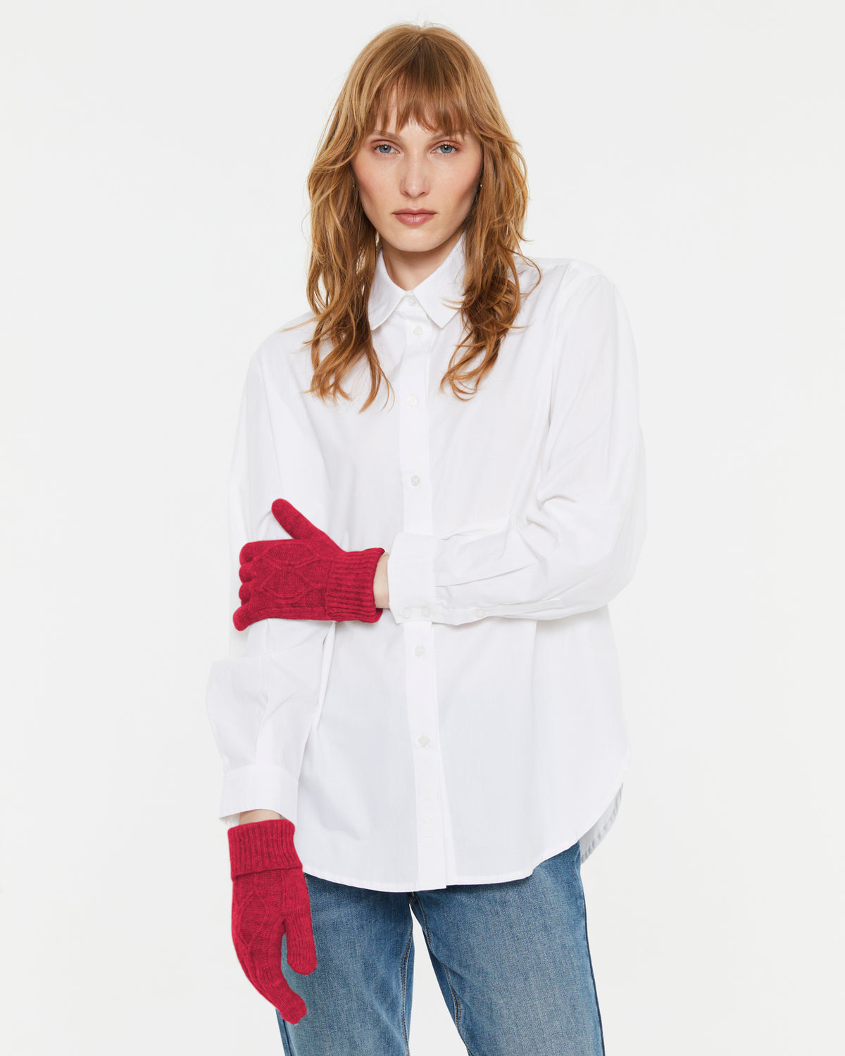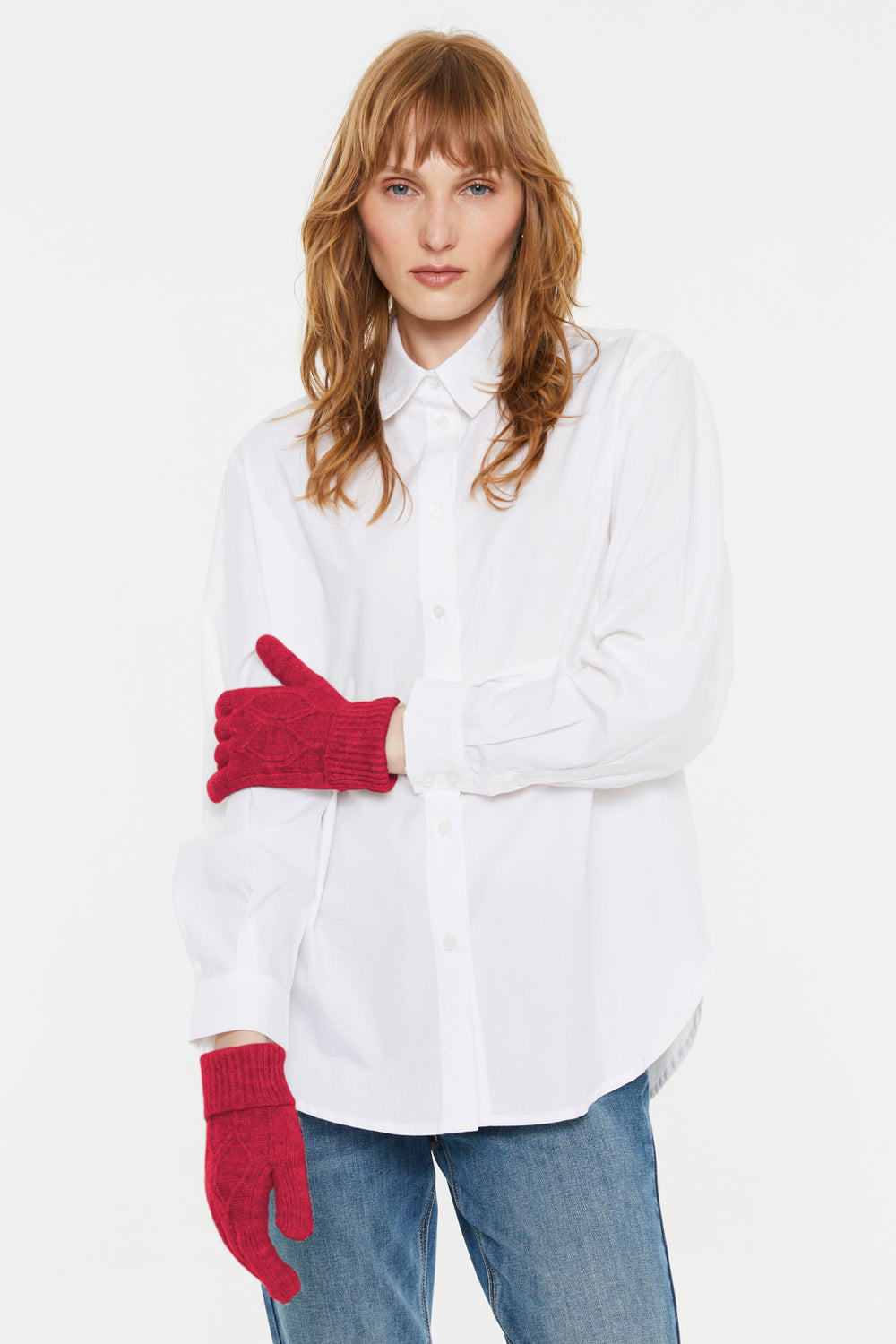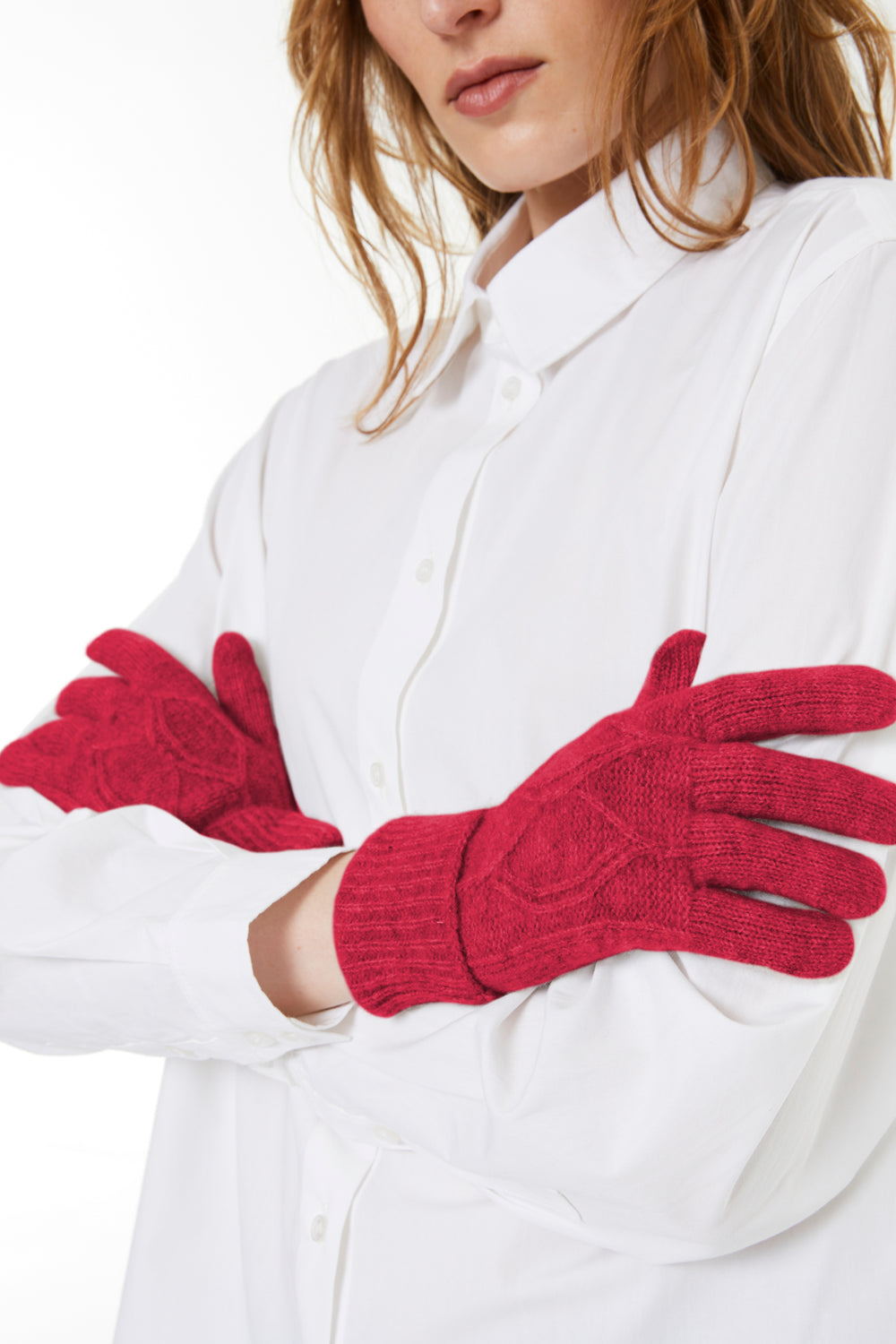 Women's knitted gloves with braided structure