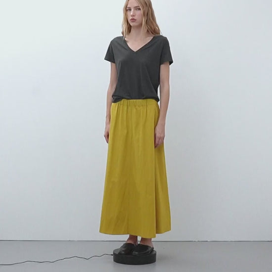 Camiseta de cuello pico y manga corta. Confeccionada en tejido de algodón y bambu. Prenda sostenible. Regular fit.