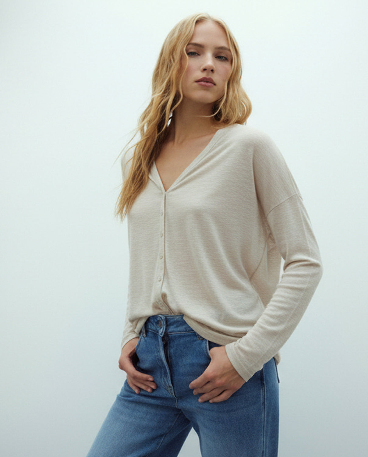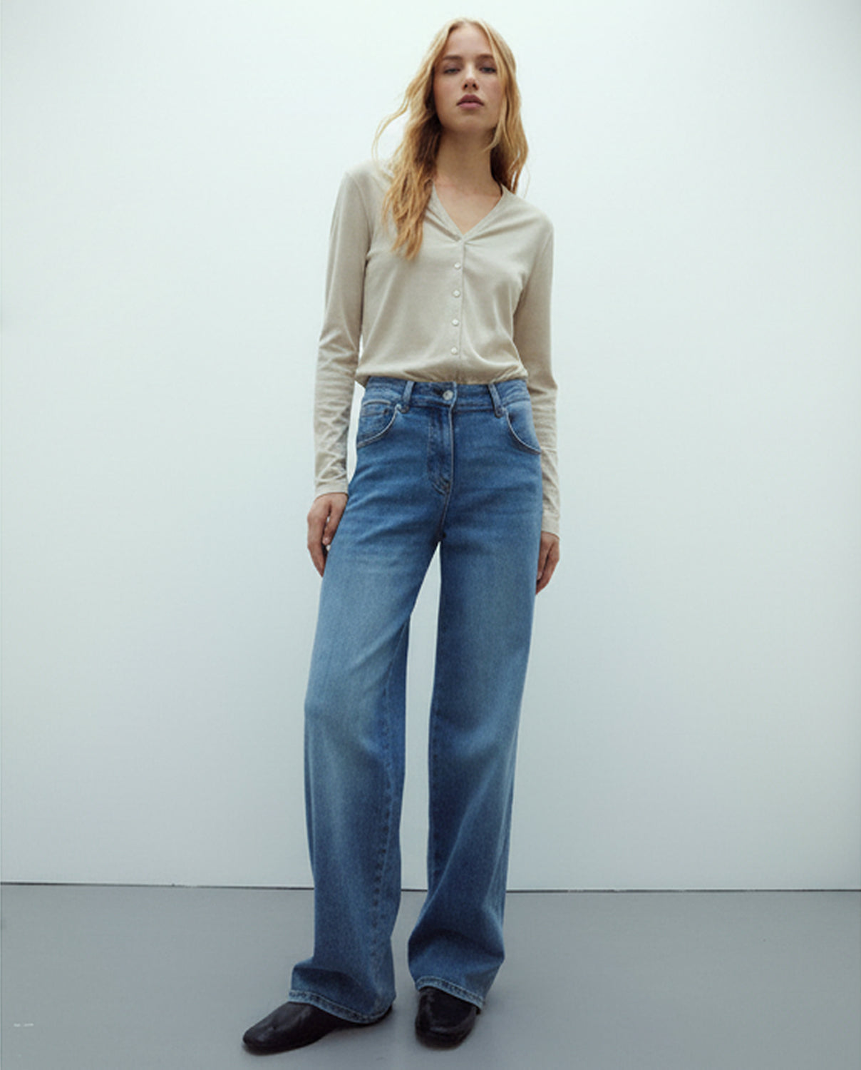 La modelo mide 1,77 m y utiliza la talla 40