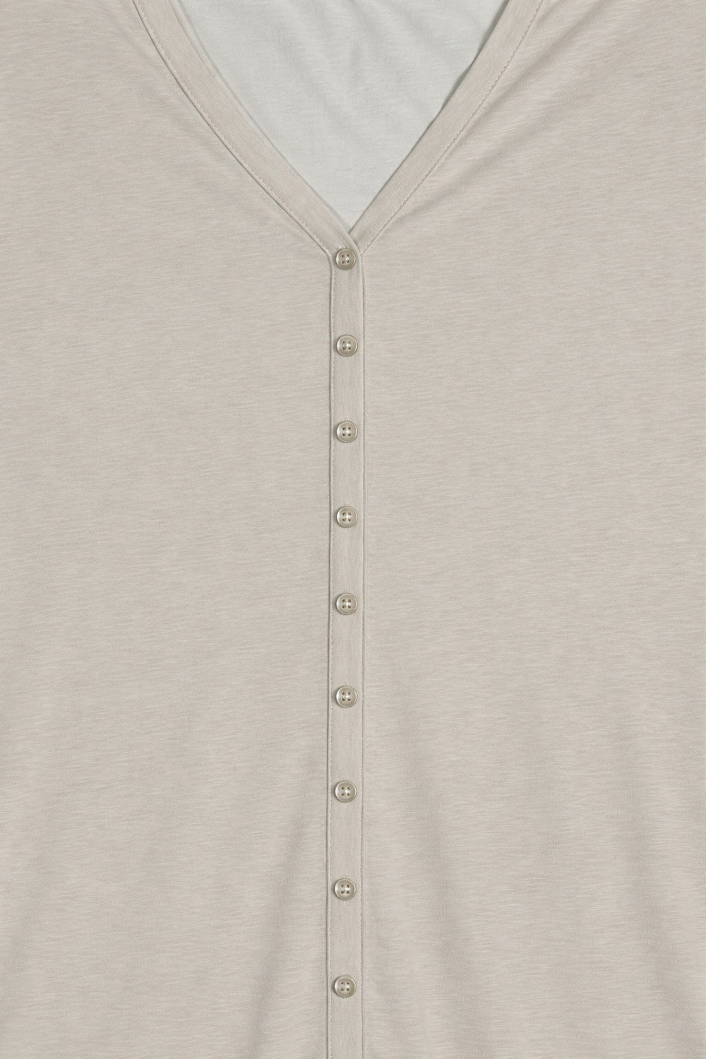 Camiseta de cuello pico y manga francesa. Detalle de falsa abotonadura en centro delantero. Regular fit.