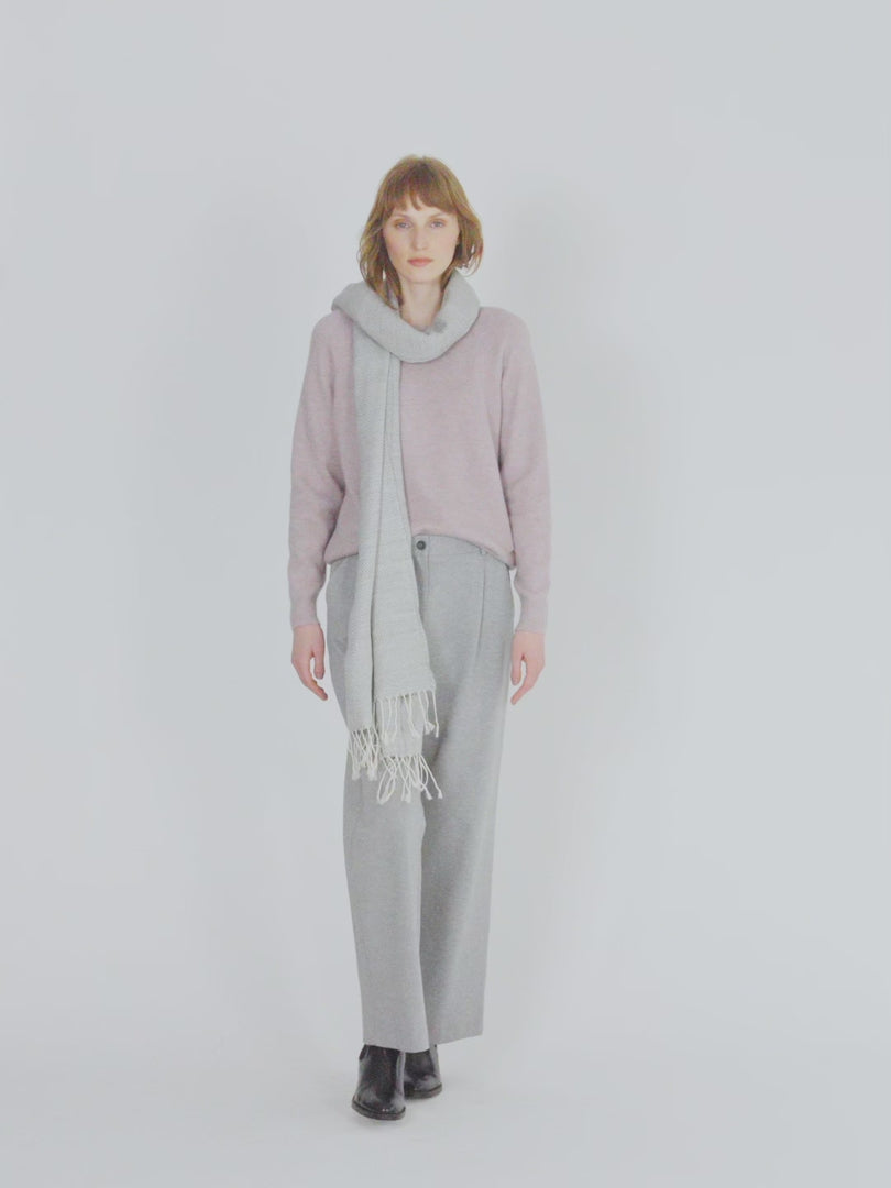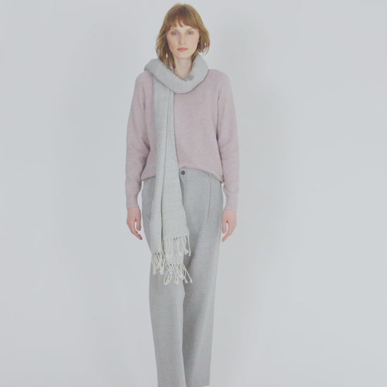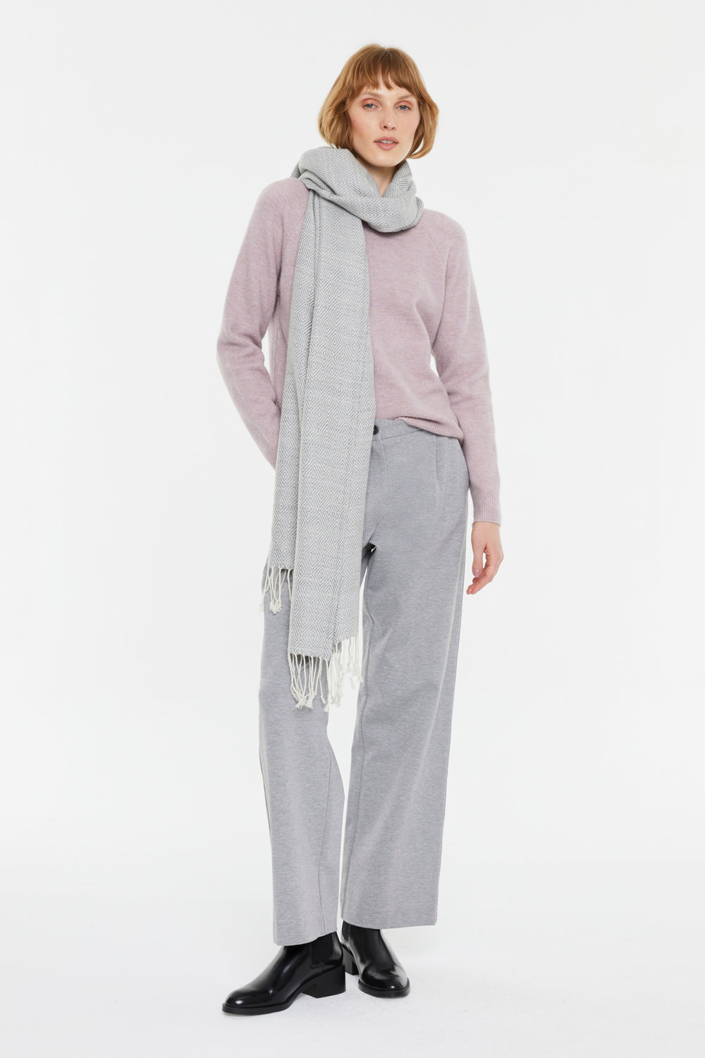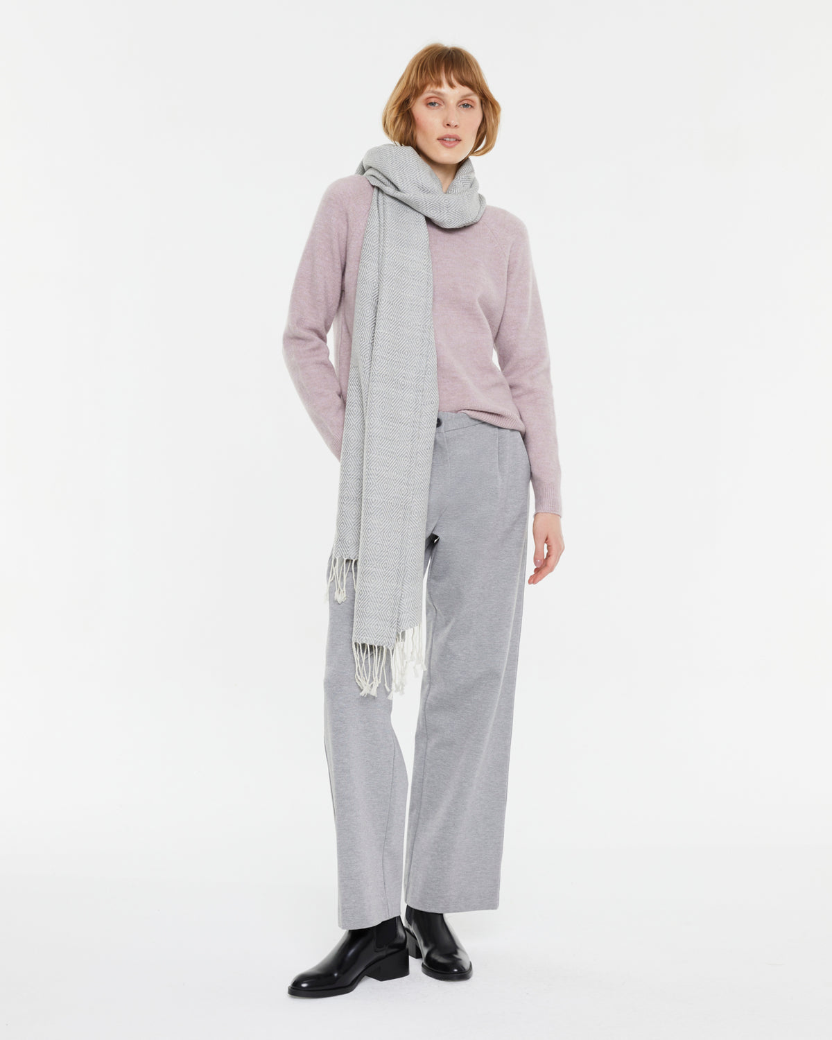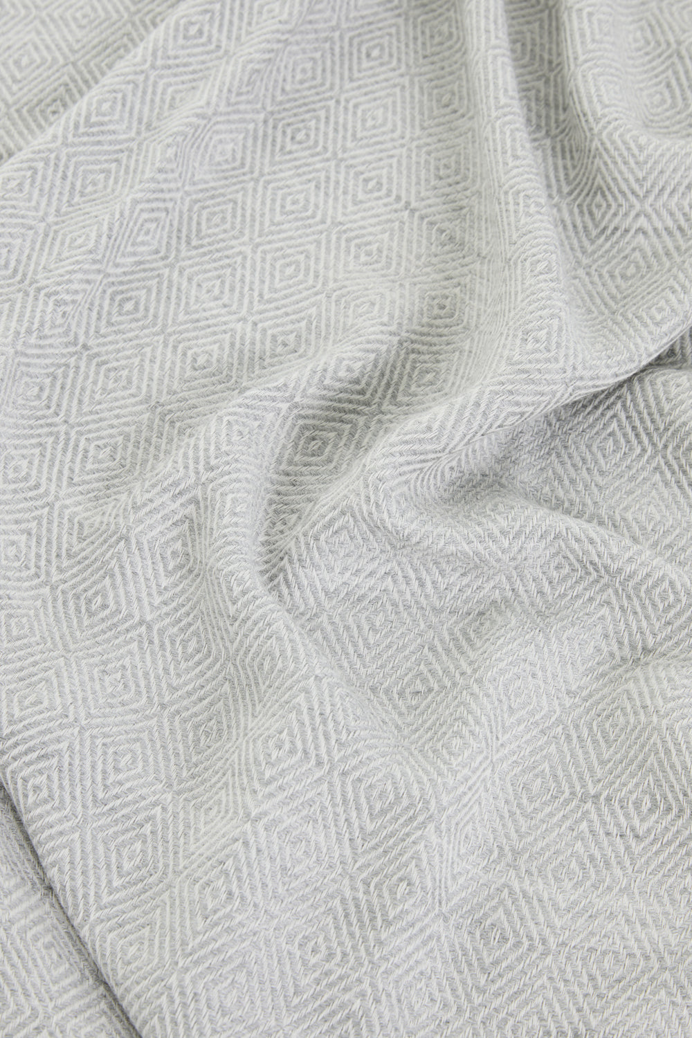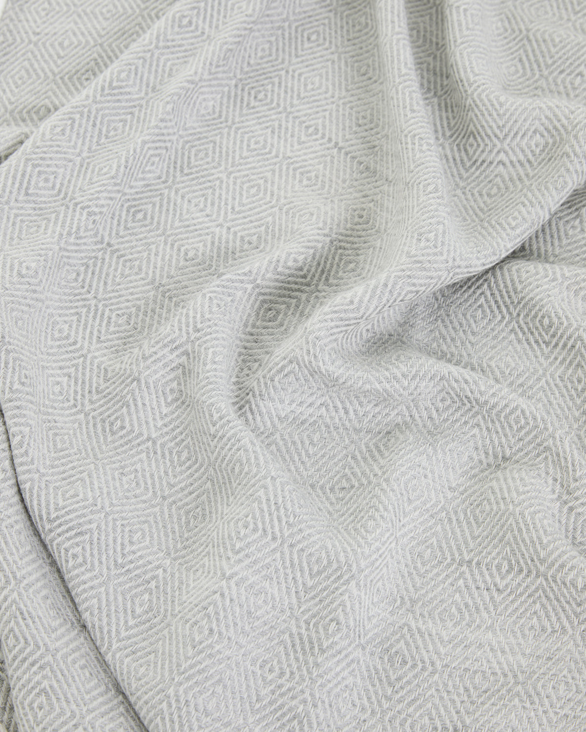 Fulard de jaquard con forma geométrica y acabado bajos con flecos.