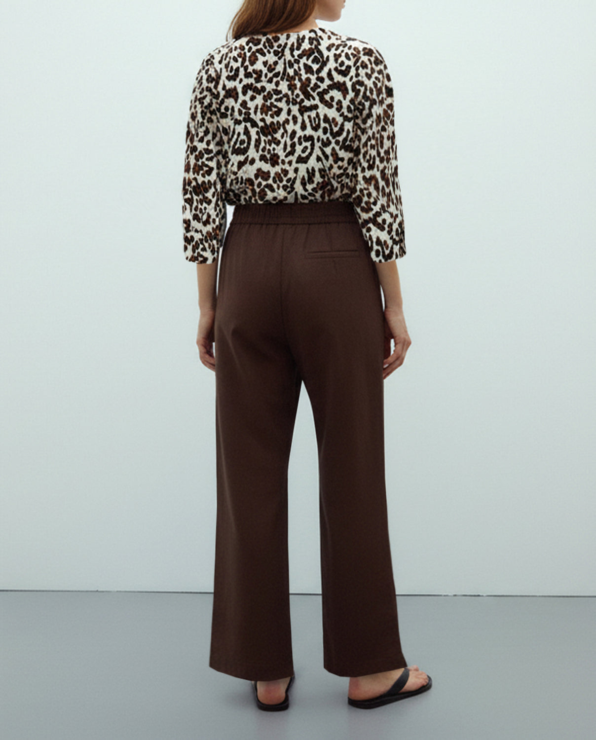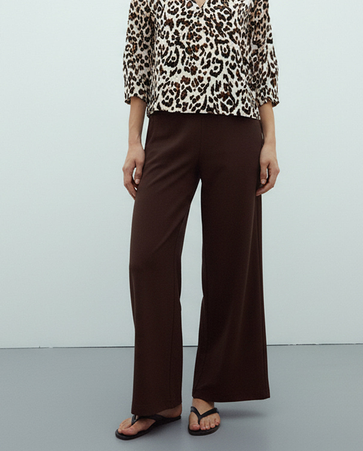 Pantalón ancho con goma elástica en trasero y bolsillos laterales. Pantalón confeccionado en tejido 100% tencel.