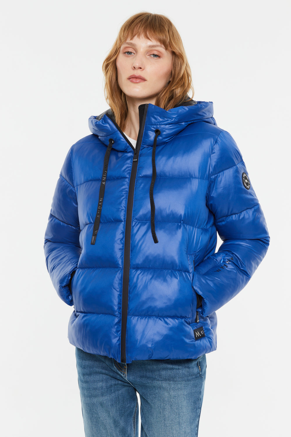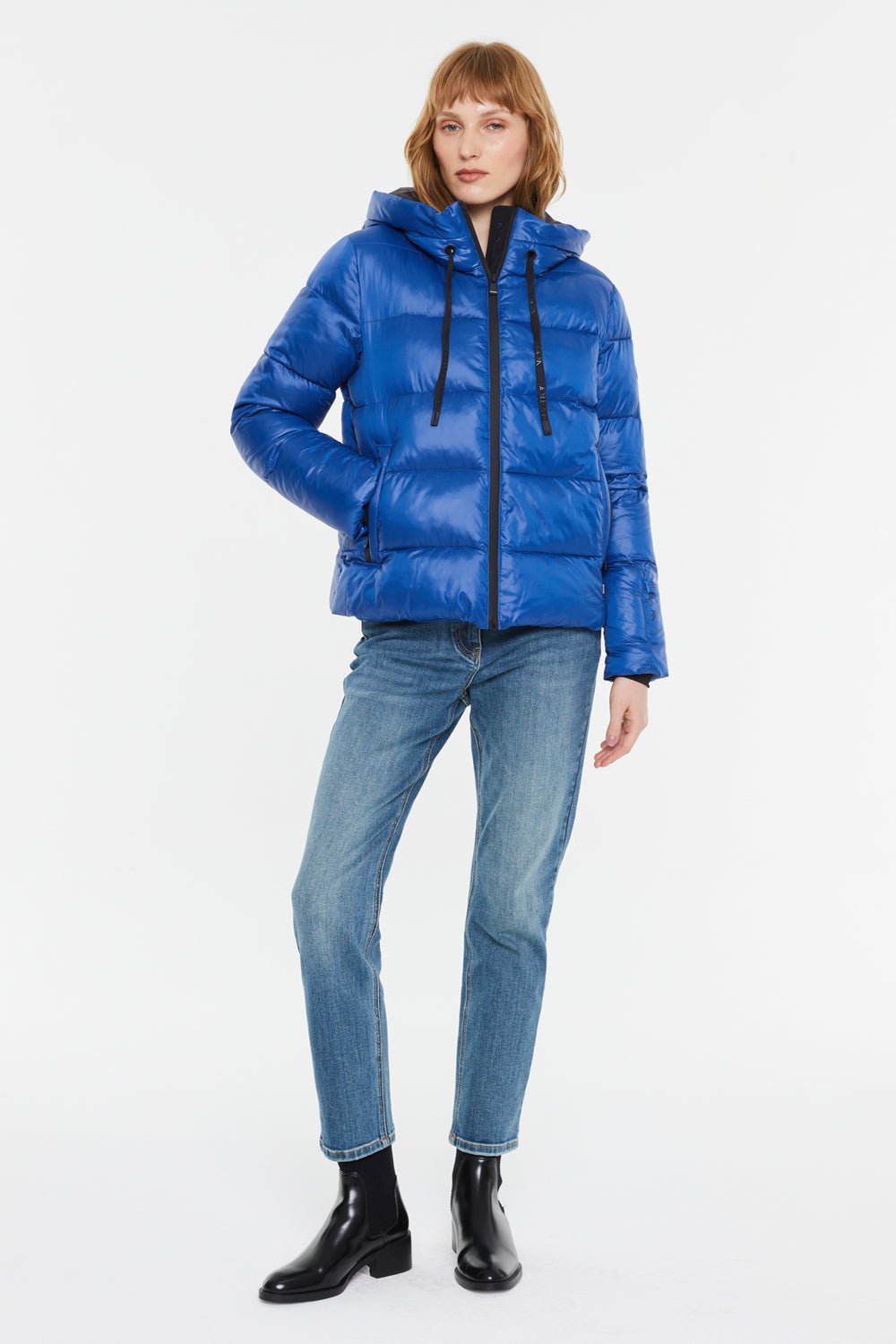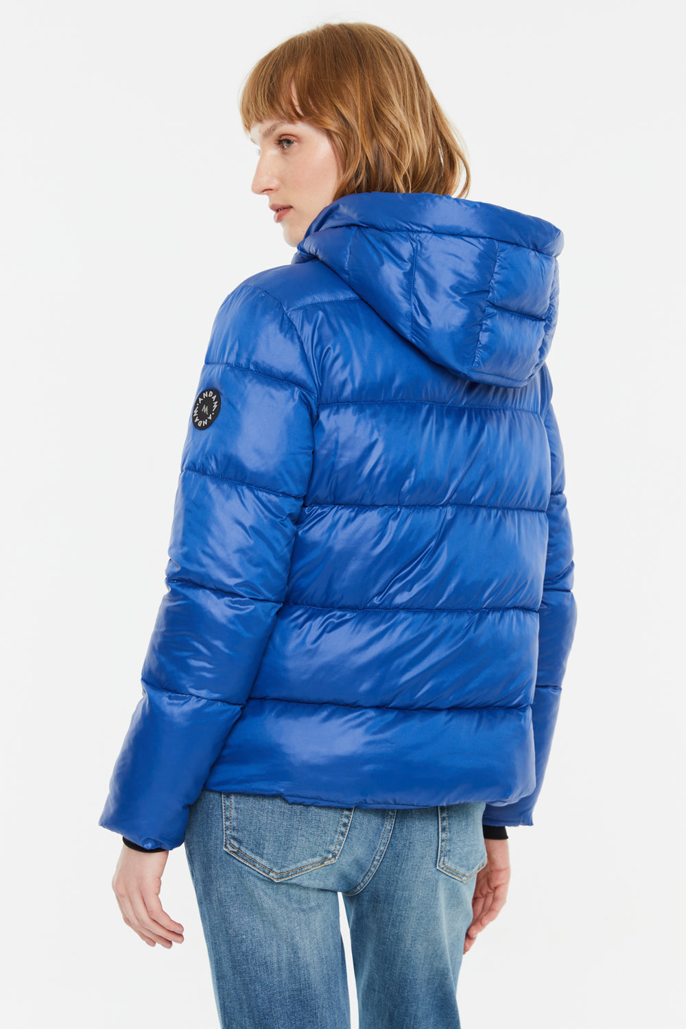 Parka acolchada corta con capucha.Cierre frontal con cremallera bidireccional, bolsillos con cremallera. Puños elásticos efecto guante. Detalle de forro interior estampado en cuadro vichy bicolor. Logo de la marca en manga. Regular fit.