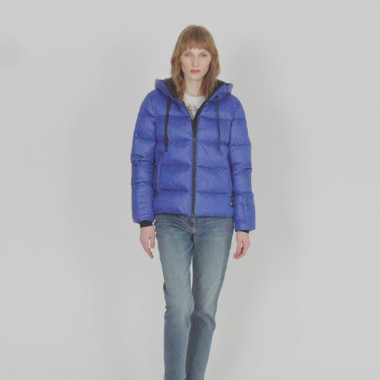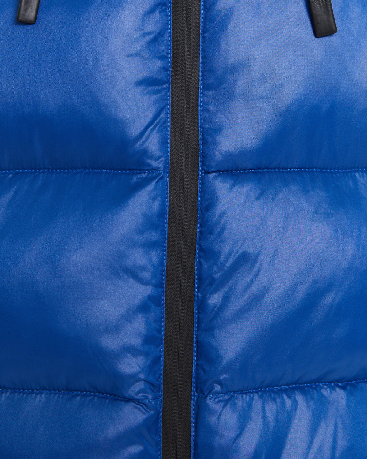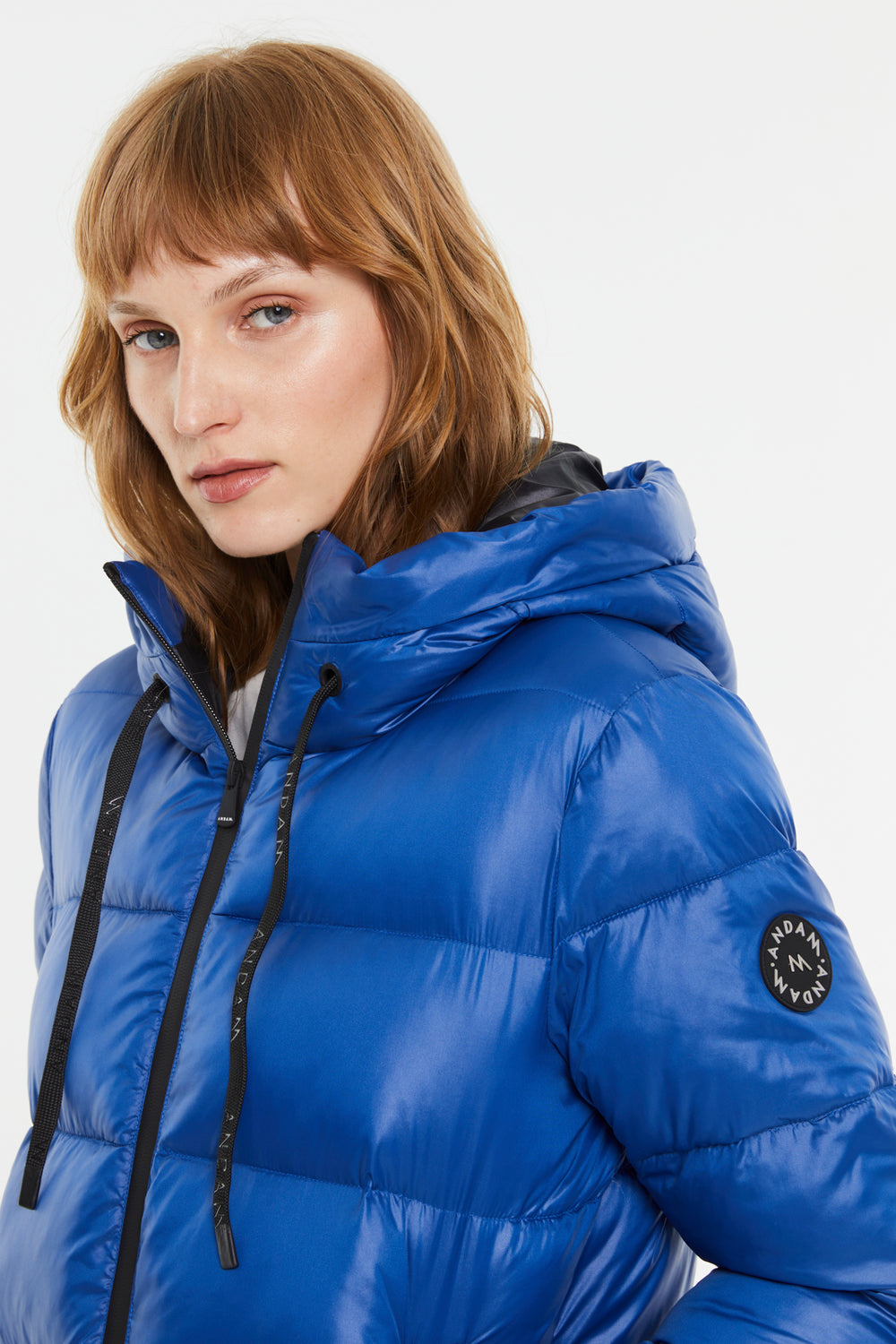 Parka acolchada corta con capucha.Cierre frontal con cremallera bidireccional, bolsillos con cremallera. Puños elásticos efecto guante. Detalle de forro interior estampado en cuadro vichy bicolor. Logo de la marca en manga. Regular fit.