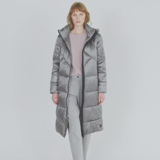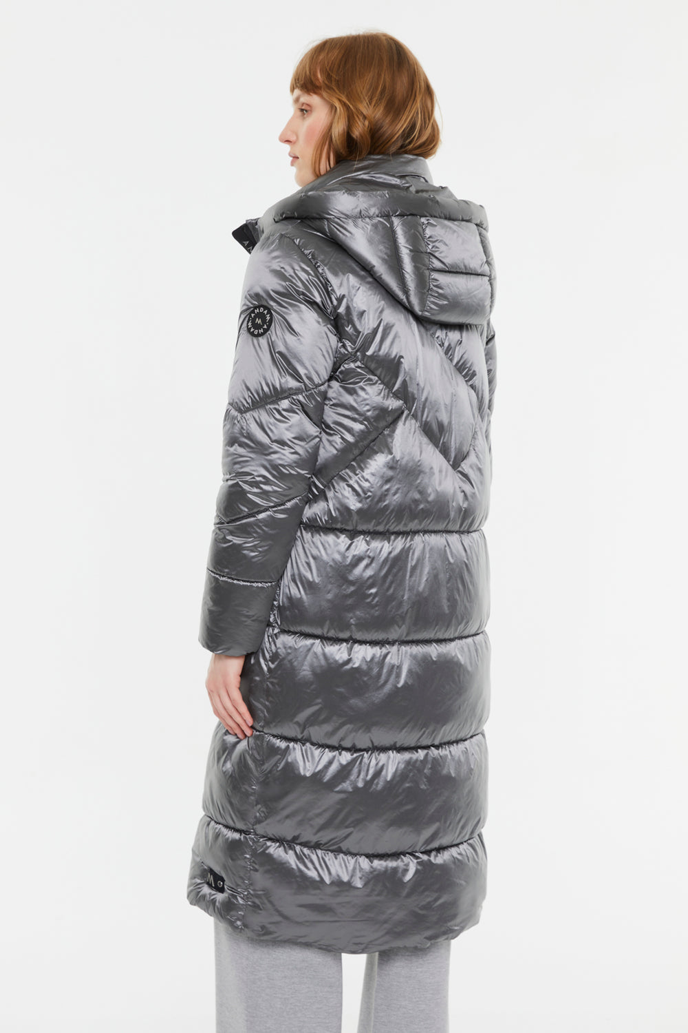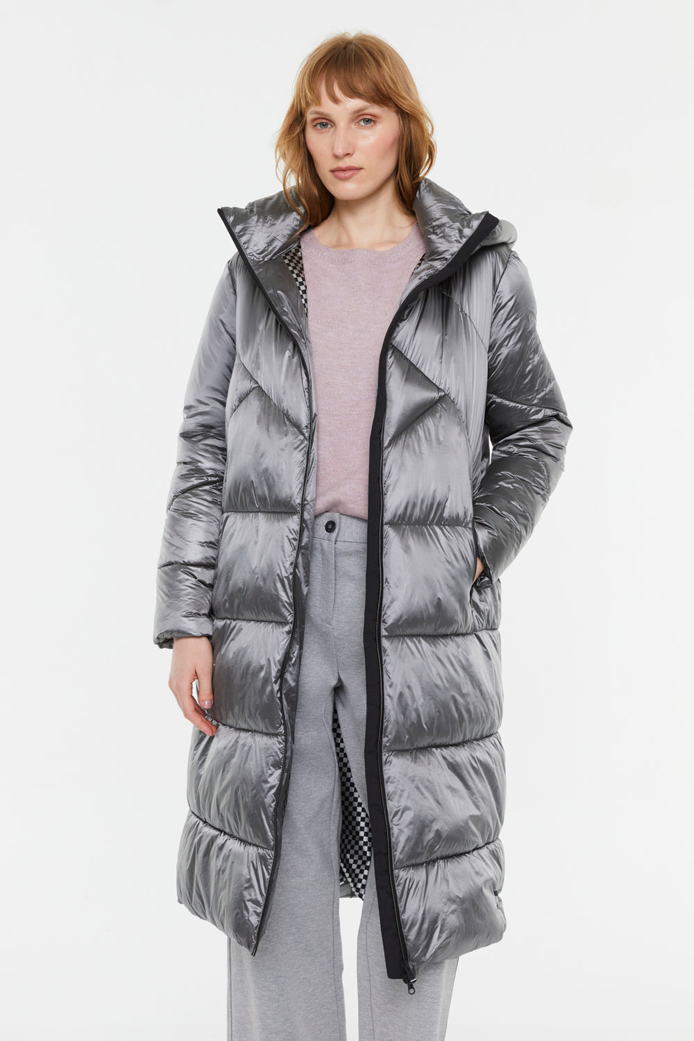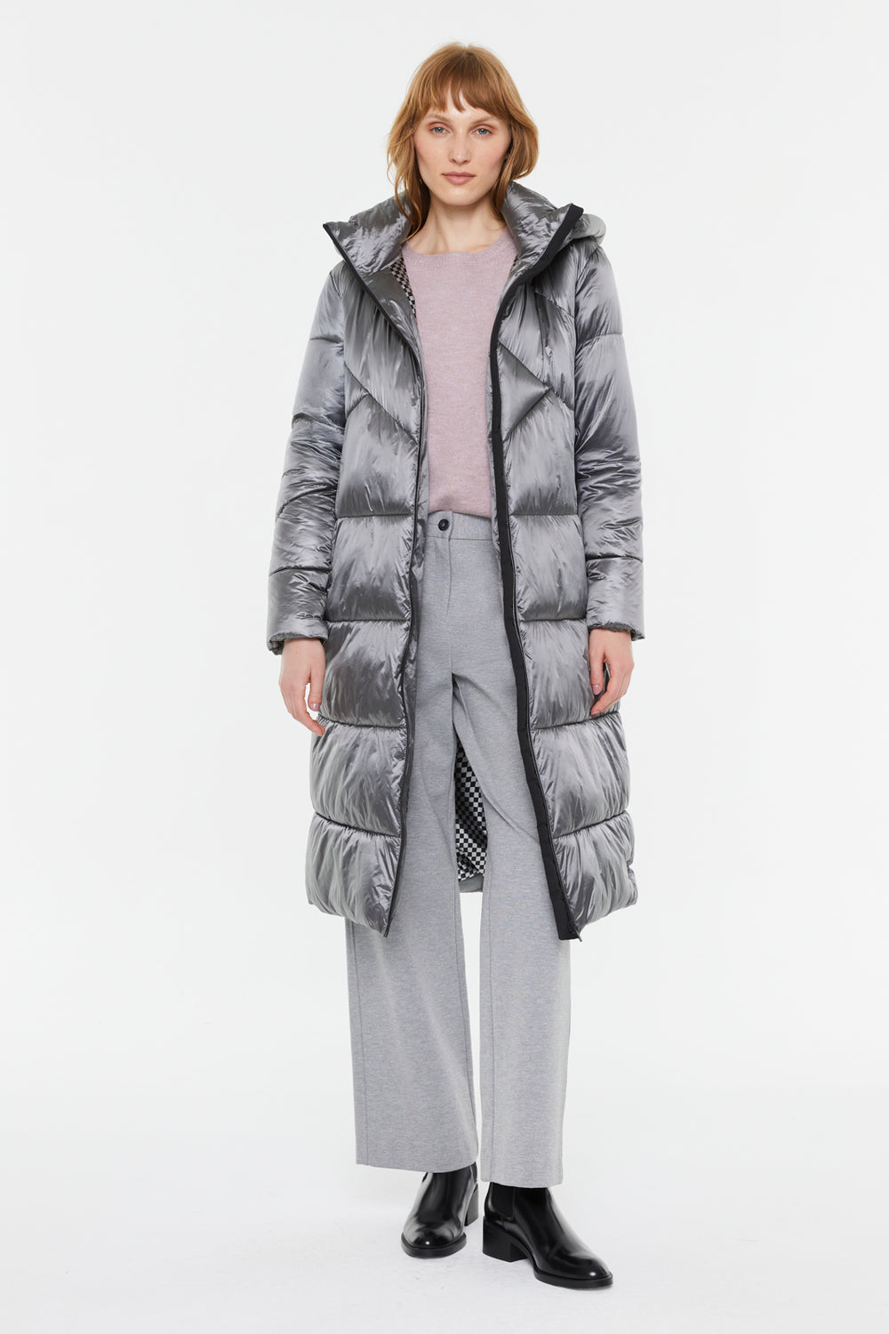 Parka larga acolchada con capucha extraible. Cierre con cremallera bidireccional. Bolsillos con cremallera. Detalle de forro interior estampado en cuadro vichy bicolor y bolsillos interiores. Etiqueta del logo de la marca en manga y bajo. Regular fit.